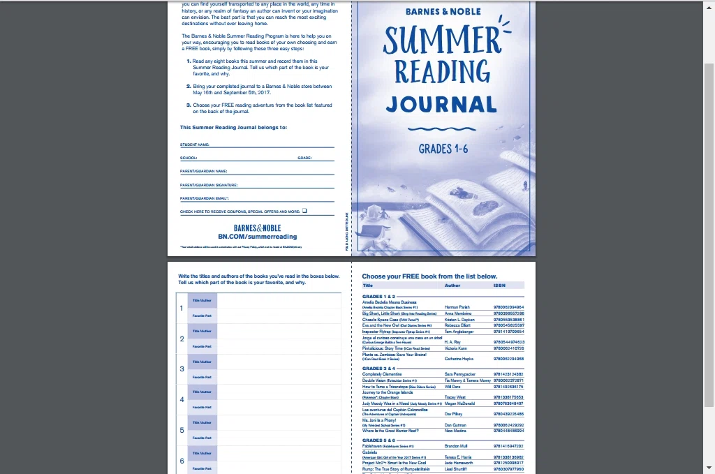 Barnes Noble Summer Reading Program Grades 1 6 Bps