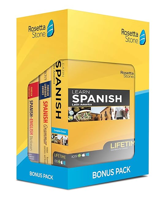Learn Spanish Rosetta Stone Bonus Pack Bundle Lifetime Online Access Grammar Guide And Dictionary Book Set