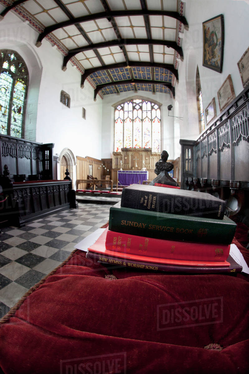 A Pile Of Hymn And Service Books On A Bench In A Church Staindrop Durham England Stock Photo