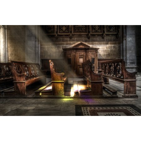 Canvas Print Wood Glass Stained Window Bench Church Dark Stretched Canvas 10 X 14