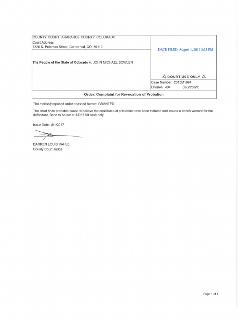 John Bowlen Attorney Seeks To Quash Arrest Warrant For Son