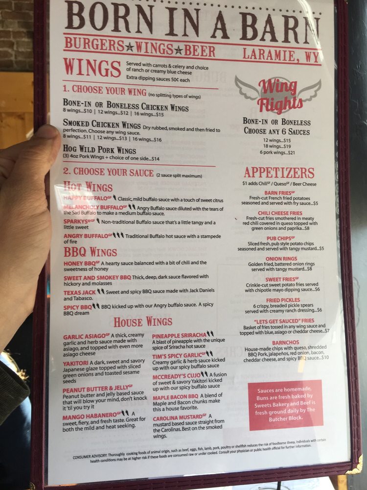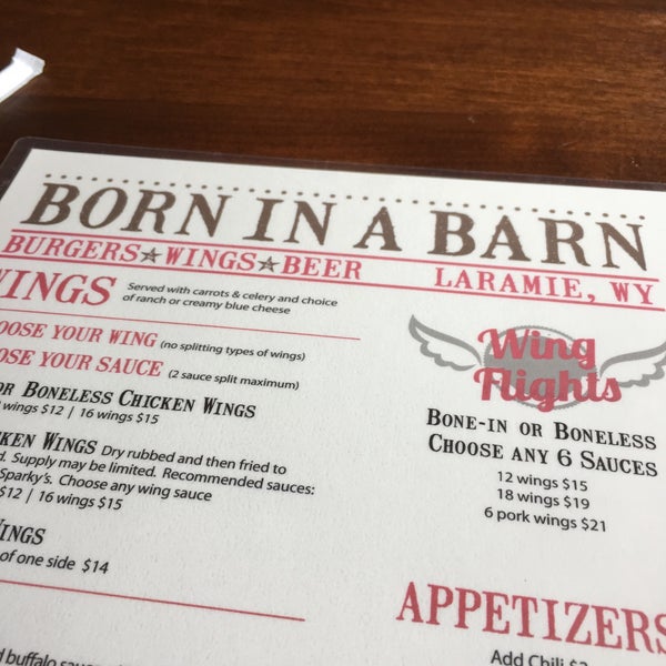 Menu Picture Of Born In A Barn Laramie Tripadvisor