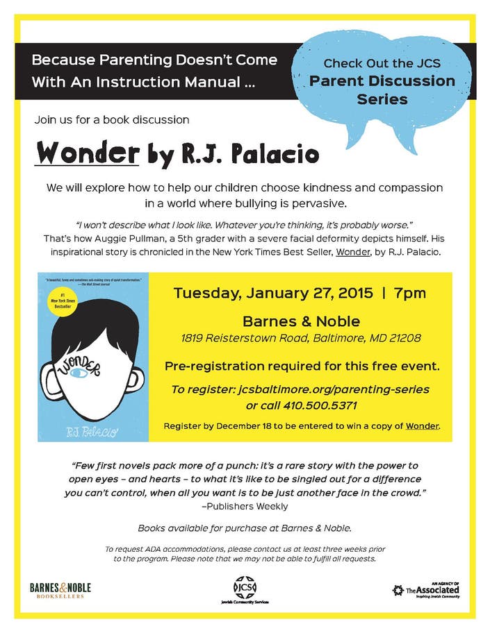 Wonder A Book Discussion For Parents Pikesville Md Patch
