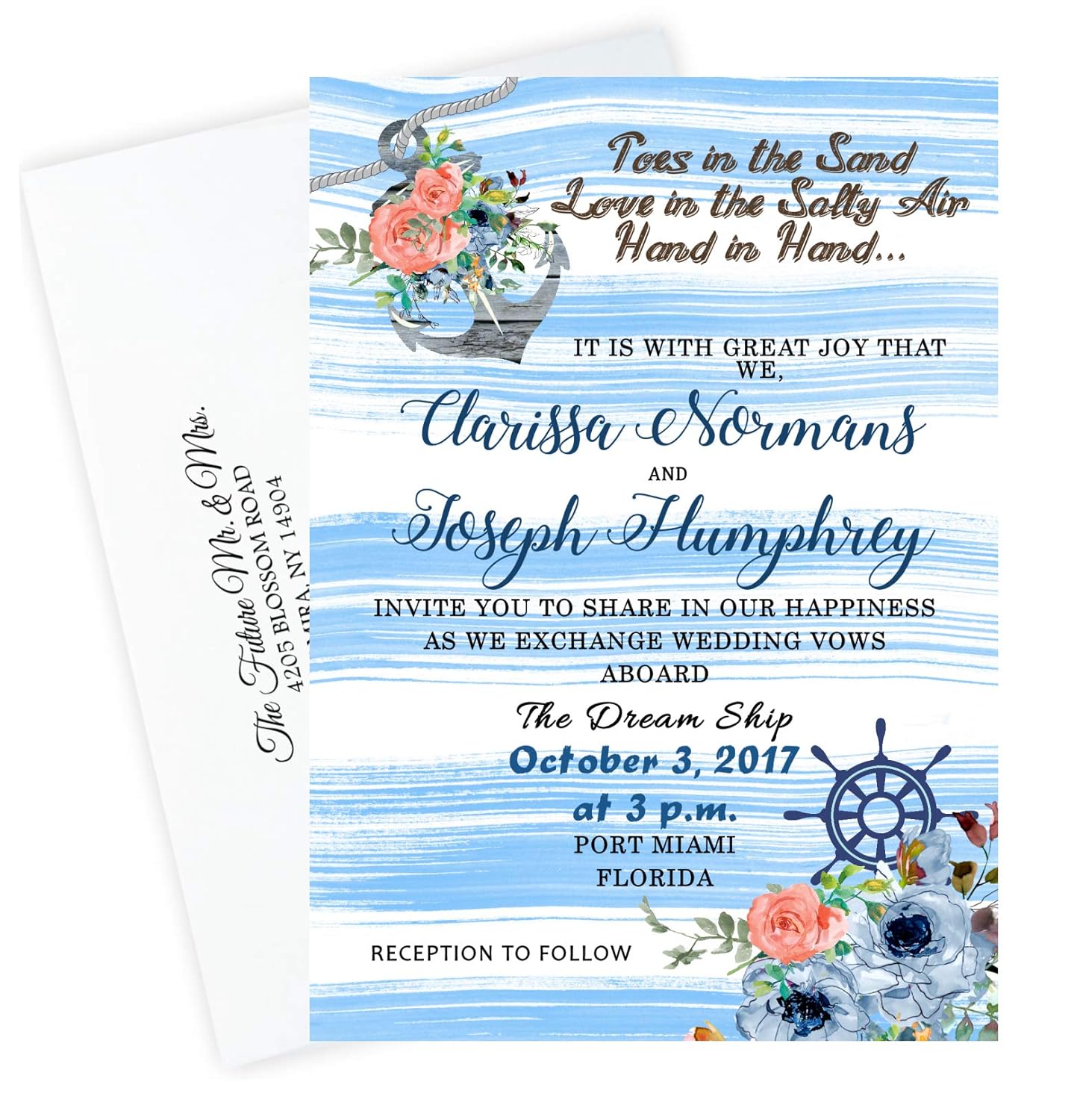 Amazon Com Beach Wedding Invitations Anchor Coral And Blue