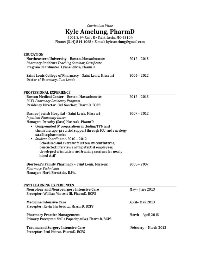 Kyle Amelung Cv 07 09 13 Pharmacy Pharmacist