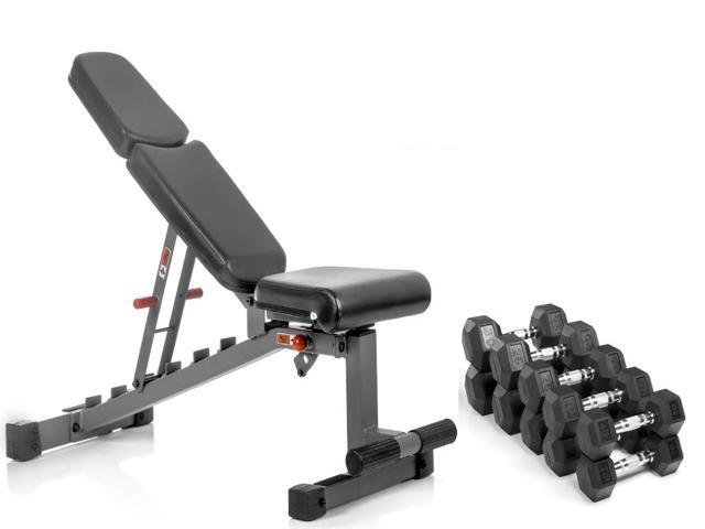 Combo Offer Xmark Fitness Adjustable Dumbbell Weight Bench Xm 7630 With Premium Quality Rubber Coated Hex Dumbbells Sold In Sets 5 Pair 10 15 20