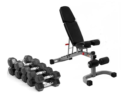 Xmark Fitness Fid Weight Bench With Preacher Curl Xm 4417 And Rubber Coated Hex Dumbbells Sold In Sets 5 Pair 10 15 20 25 And 30 Lbs Total