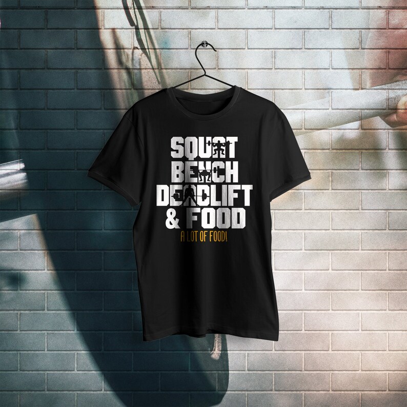 Squat Bench Deadlift And Food Powerlifting Workout Shirt Fitness Excercise Weightlifting Short Sleeve Unisex T Shirt