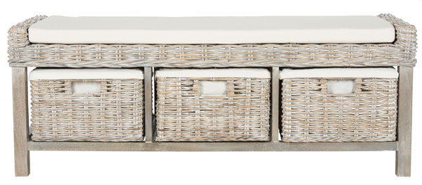 White Hall Bench Storage With Baskets And Cushion Basket