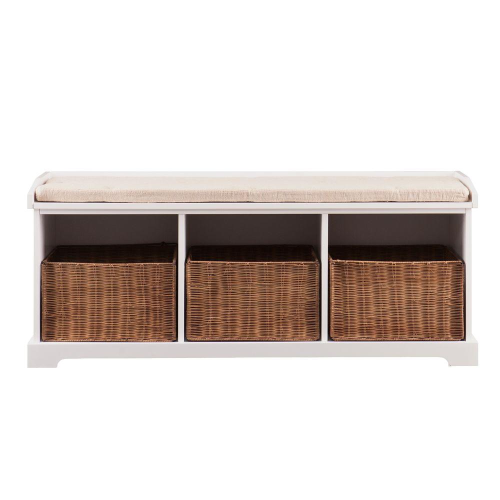 49 White Storage Bench With Baskets White 3 Basket Storage