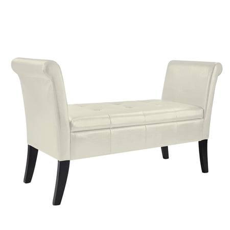 Corliving Antonio Bonded Leather Storage Bench With Rolled Arms Cream