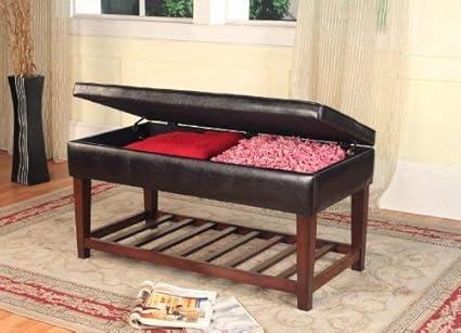 Amazon Dark Brown Bonded Leather Storage Bench Two Trays