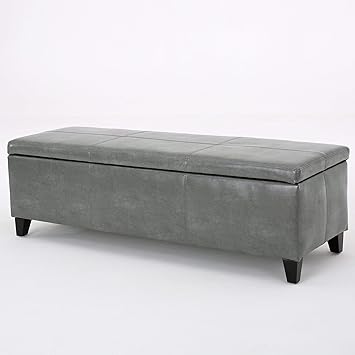 Christopher Knight Home 298341 Living Sarelia Bonded Leather Storage Ottoman Bench Dark Grey
