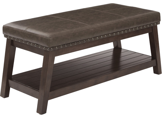 Roundhill Furniture Espresso Bonded Leather Storage Bench With Shelf
