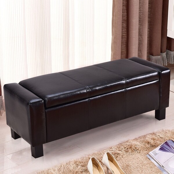 Shop Black Leather Storage Arm Bench Ottoman Free Shipping