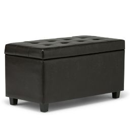 Simpli Home Memphis Faux Leather Storage Bench Midnight