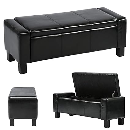 Details About Black Leather Bench Storage Padded Soft Cozy Seat Durable Home Indoor Furniture