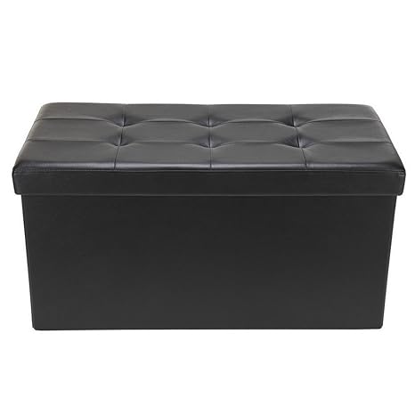 Homegear 30 Folding Faux Leather Storage Ottoman Footstool Bench Black