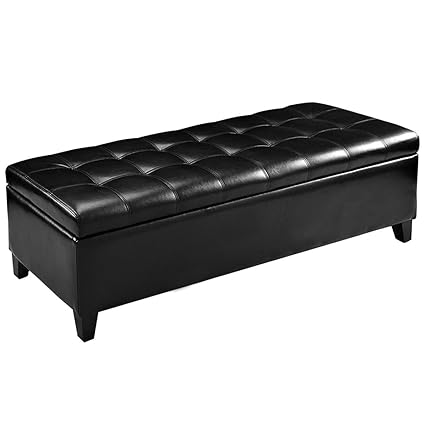 Giantex 51 Storage Ottoman Bench Pu Leather Home Accents Tufted Rectangular Footstool Black