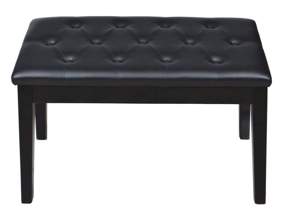 Black Leather Padded Ebony Polish Concert Duet Piano Keyboard Bench Book Storage