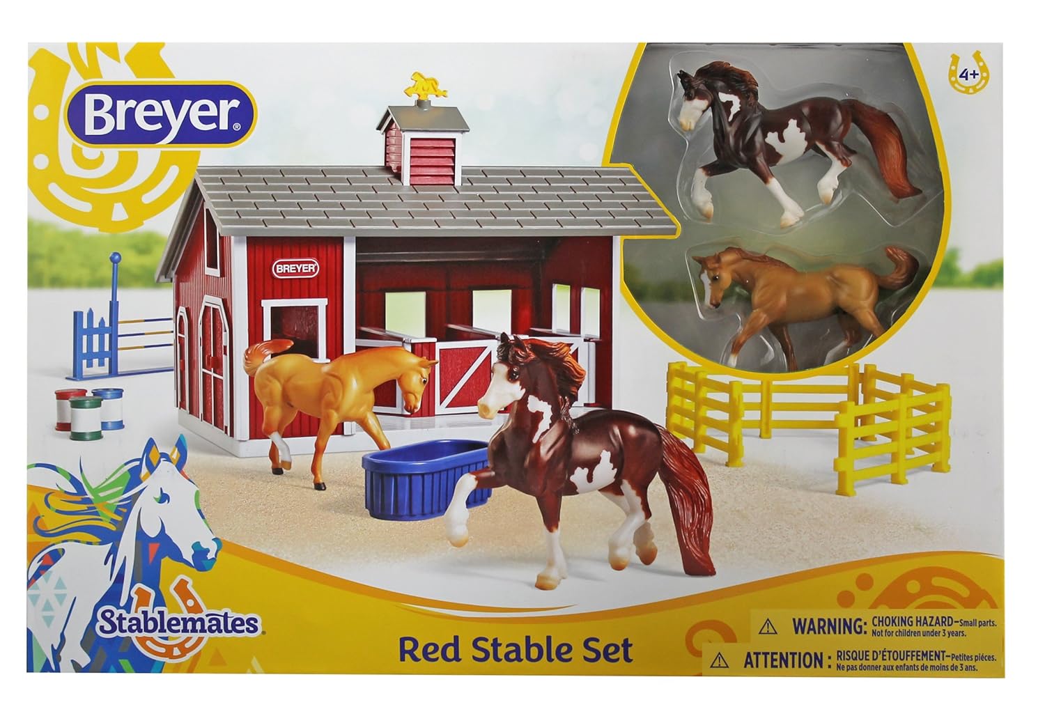 Breyer Stablemates Deluxe Horse Stable Set 19 Piece Play Set With 2 Horses 28 X 16 X 8 5 1 32 Scale Model 59209
