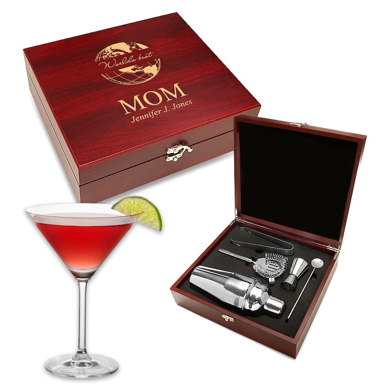World S Best Mom Personalized Barware Set Customised Martini Set For Mom 5 Piece Steel Barware Gift For Mom Boxed Cocktail Shaker Set