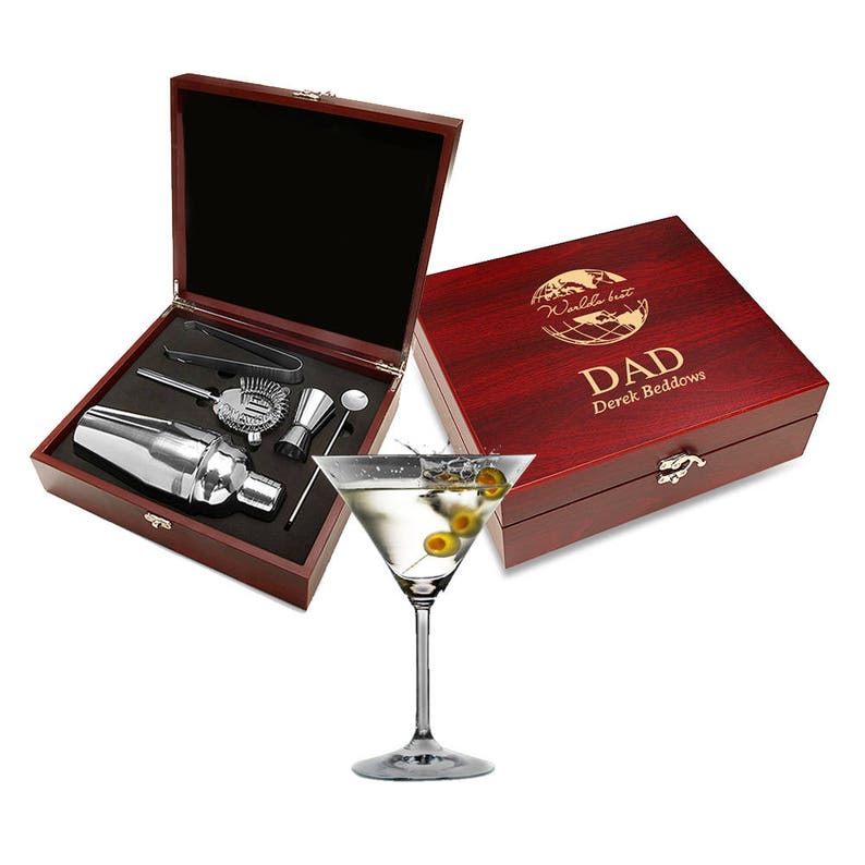 World S Best Dad Personalized Barware Set Customised Martini Set For Dad 5 Piece Steel Barware Gift Boxed Cocktail Shaker Set
