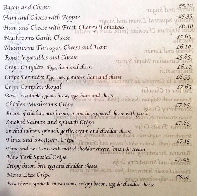 Creperie Cafe Menu Menu For Creperie Cafe Barnes London