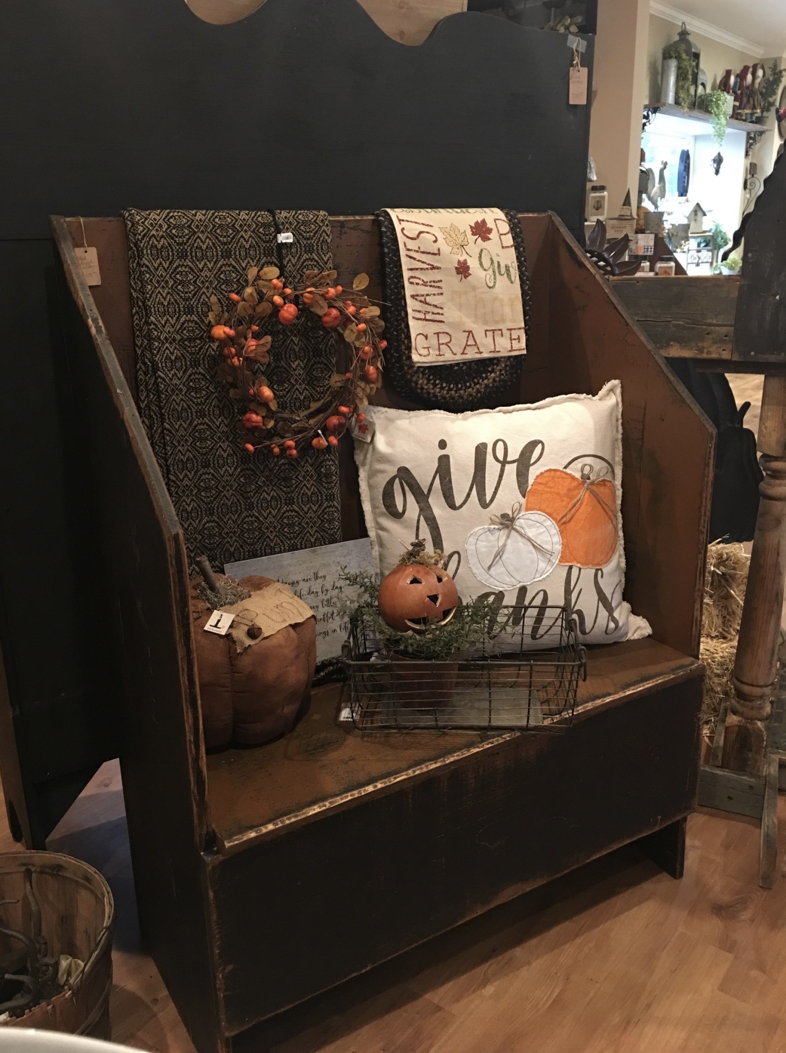 Black Entry Bench With Gray Bins Vintage Entrance Foyer