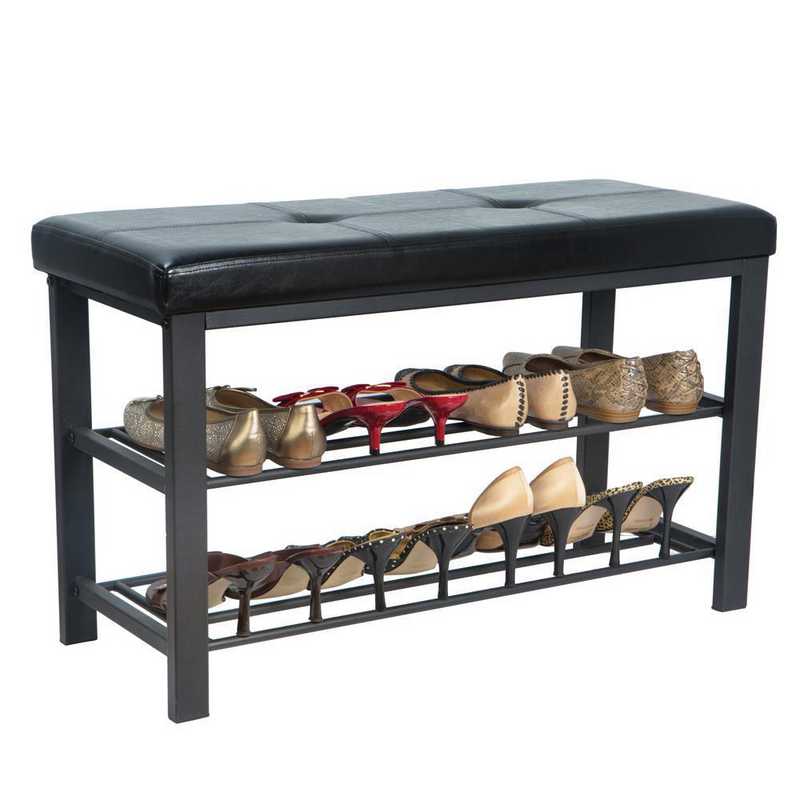 Costway Shoe Bench Storage Rack Cushion Seat Ottoman Bedroom Hallway Entryway Black