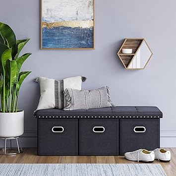 Black Entryway Storage Bench Tumueble